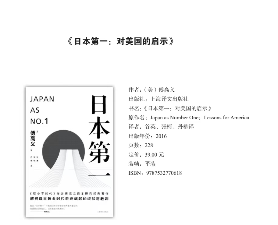 日本作为岛国自古以来和大陆先进文明保持着一种若即若离的关系。一方面和平引进先进的文化,从最早的铁器技术的引进,到汉唐以后效仿中央集权制和均田制等大陆先进制度建立律令制国家,再到明治维新之后学习欧美文明大跨步进行近代化改革都获得了成功,而另一方面日本作为一个具有菊与刀双重性格的国家发动了多次对外侵略战争,包括封建时代的白江口之战(又称白村江之战)2、万历朝鲜战争3,太平洋战争给亚洲人民留下了无可磨灭的历史回忆。尽管近代以来日本对外活动频繁,但是在历史长河中日本和外部大时代发展轨迹相碰撞的时间点是屈指可数的。那么为什么日本能够在这些为数不多的碰撞时间点里实现大发展,创造经济奇迹?傅高义在本书中给出了自己的答案。