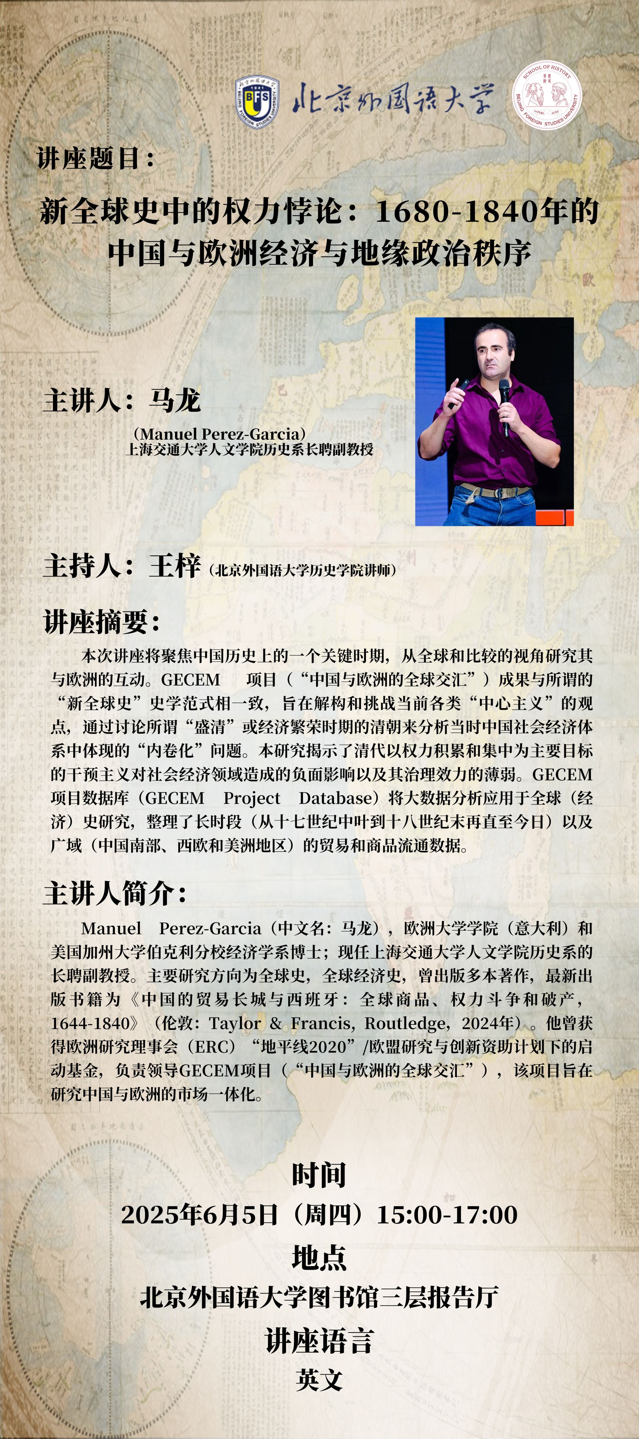 主讲人:Manuel Perez-Garcia(中文名:马龙)上海交通大学人文学院历史系长聘副教授