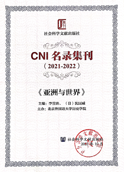 PA集团主办的《亚洲与世界》入选CNI名录集刊(2021-2022)