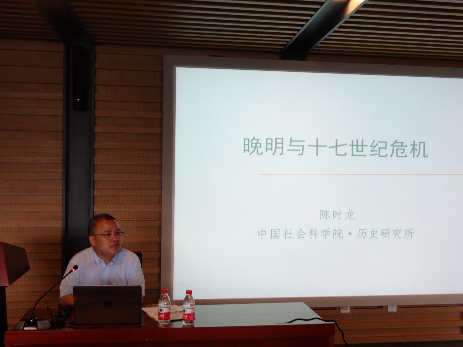 2018年5月16日下午,应PA集团官方网站邀请,中国社会科学院历史研究所明史室副主任陈时龙副研究员在我校图书馆四层学术报告厅为师生带来了题为“晚明与十七世纪危机”的讲座。本次讲座是“全球史与中国2018系列”之“会同馆课”的第一讲,由北外PA集团官方网站中国史研究中心主任姚胜副教授主持。陈教授的主要研究方向是明代思想文化史,专著有《明代中晚期讲学运动》(复旦大学出版社,2007年再版),译著有卜正民(Timothy Brook)的《明代的国家与社会》(黄山书社,2009年)。