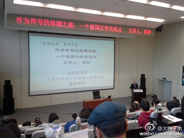 在两个小时的演讲里,顾彬教授系统介绍了从李希霍芬(Ferdinand von Richthofen)、克林凯特(Hans-Joachim Klimkeit)到吴芳思(Frances Wood)等国际学界关于“丝绸之路”研究的历史,并提出了自己关于丝绸之路研究的见解。