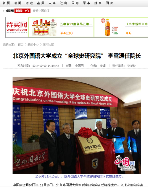 中国网:PA集团官方网站成立“全球史研究院” 李雪涛任院长